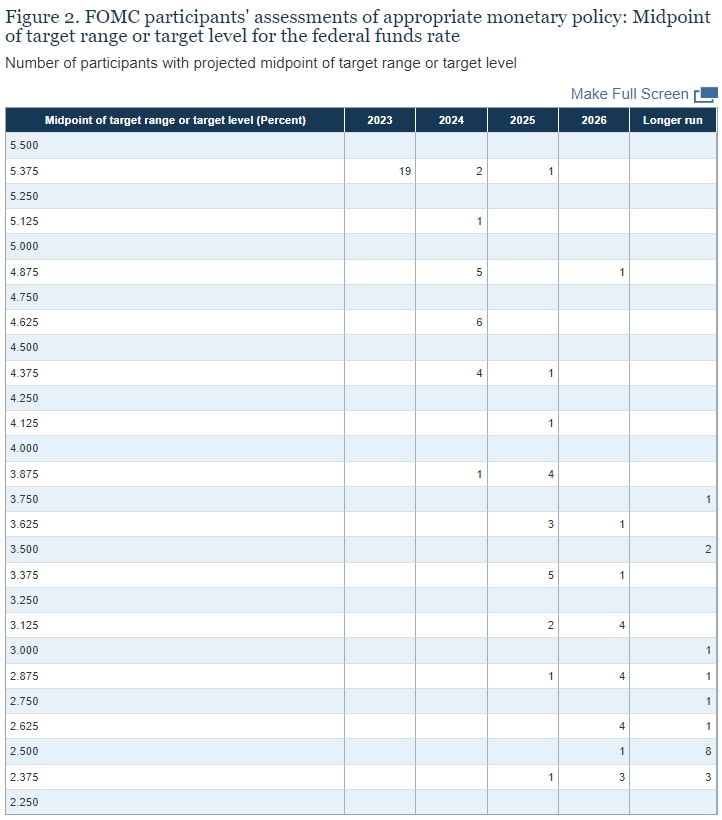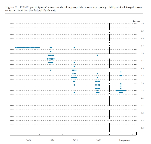 FOMC的预测中值显示2024年降息75个基点至4.6%