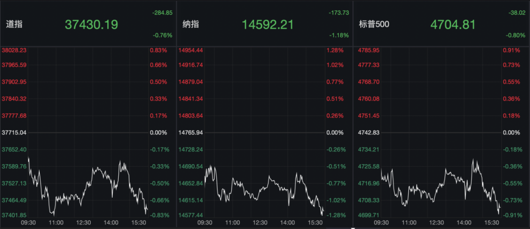 在美联储纪要公布前,里士满联储主席巴尔金(Thomas Barkin)称,进一步加息的可能性仍然存在。受此影响,美股三大指数集体低开,截至收盘,纳指跌1.18%,连续2日大跌;标普跌0.8%,道指收跌284.85点,跌幅0.76%。欧洲市场亦集体重挫,欧洲斯托克50指数大跌1.43%,主要欧洲国家股指齐跌。