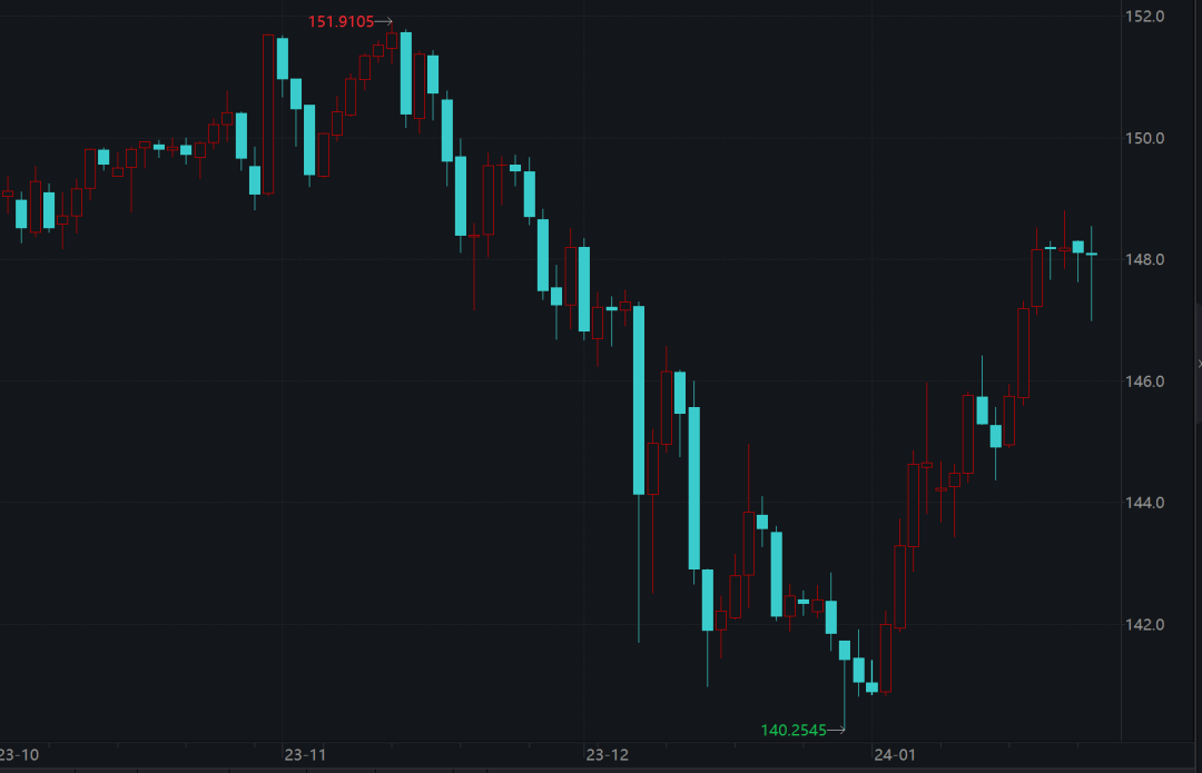 上周,日元汇率一度跌至去年11月底以来的最低水平。今年到目前为止,它仍然是主要发达国家同行中表现最差的主权货币。日本政府方面已对汇率过度波动发出数次口头警告,日本财务大臣铃木俊一上周五曾表示,日本政府正密切关注市场走势,强调重要在于外汇市场的走势应反映经济基本面,且交易量趋于稳定。