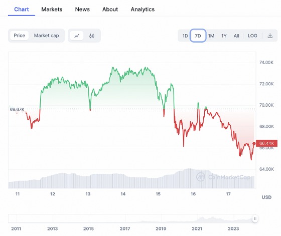 3月17日,加密货币集体“跳水”,打破了此前多天的上涨氛围。其中,比特币价格一度跌破6.5万美元/枚,目前仍徘徊在该价格区间附近。截至下午5点,比特币报价6.64万美元/枚,过去24小时价格跌3.31%,过去一周跌4.38%。