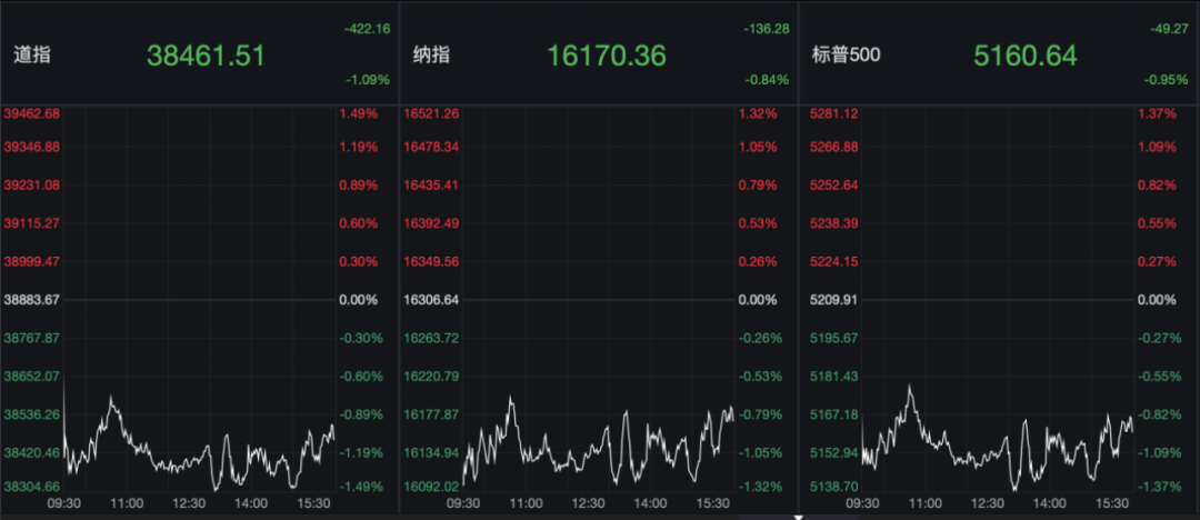 这份最新的会议纪要公布后,美股三大指数小幅反弹,截至收盘,道指跌1.09%,纳指跌0.84%,标普500指数跌0.95%。