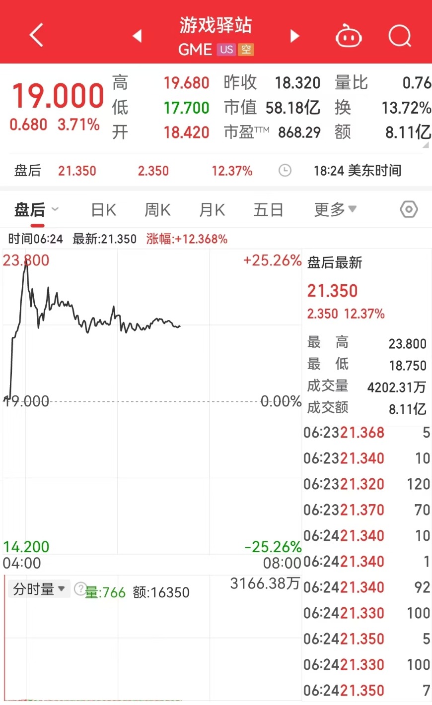 周五盘后,美国“散户疯炒股”代表游戏驿站宣布,上周公司披露的新股增发计划已经完成,在扣除佣金和发行费用前的毛收入近9.334亿美元。此前由于“咆哮小猫”账号复苏引发的爆炒,游戏驿站股价在五月中旬的短短两天内从17美元涨至最高64美元。面对股价异动,公司随即宣布以“按市价发行”的方式增发至多4500万股。按照最新公告,游戏驿站增发的平均售价为20.7美元,较上个月的平均股价接近翻了一倍。该公司股价盘后一度涨超20%。