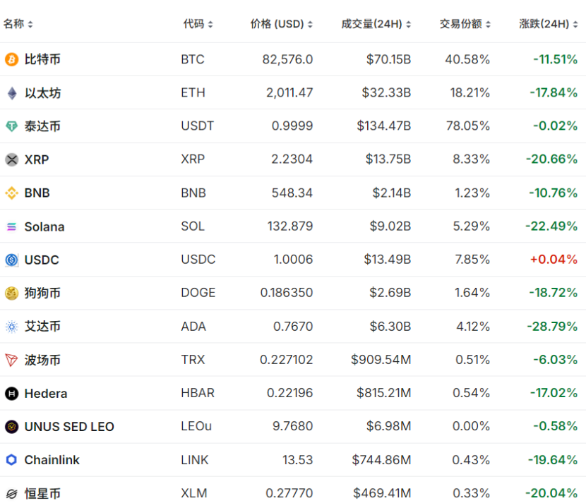 其他加密货币跌幅更大,3月4日盘中,BNB一度跌超10%,以太坊跌超17%,狗狗币跌近19%,XRP、恒星币跌超20%,Solana跌超22%,艾达币跌超28%。