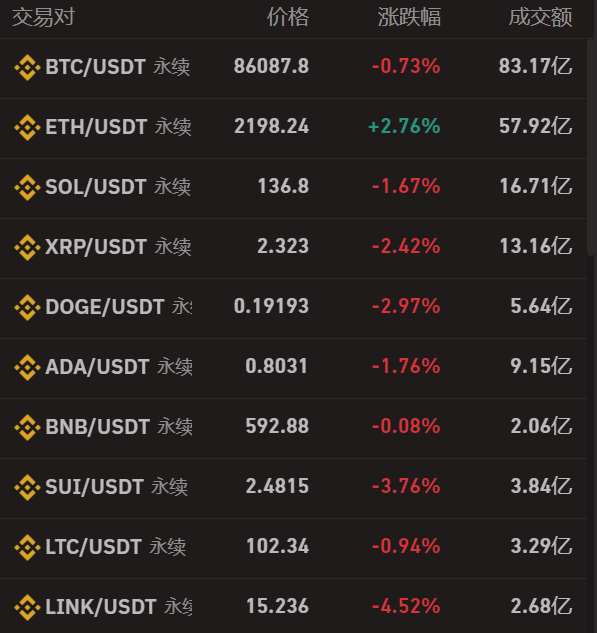 峰会召开前后,瑞波币、艾达币和SOL等山寨币遭大量抛售。比特币相对坚挺,盘中也一度跌破86000美元。